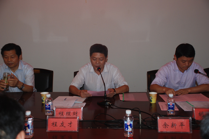 上图为山河集团董事长程理财(左)向团风县教育局捐赠60万元,团风县教育局局长易淑泉(右)接受捐赠