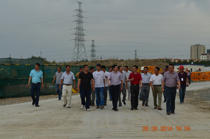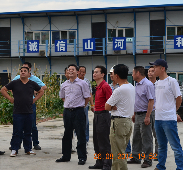 8月26日,程理财董事长一行在山河集团副总经理林金安、新疆区域公司总经理曾秋喜、新疆鹏天房地产开发有限公司总经理郑承碌鹊呐阃下,先后查看了“山河•东湖世家”、“山河•福泰花园”、“东湖公园”等项目工地,对开发、建设项目进行了现场指导和帮带。