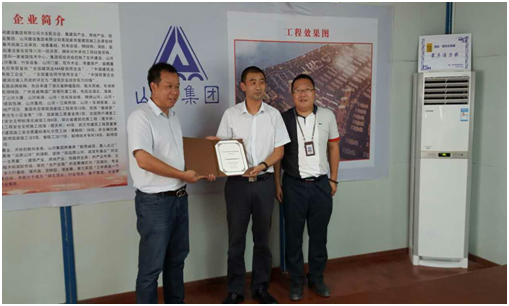 2015年6月17日下午,万科南昌公司助理总经理兼工程总监李汉杰带领工程、采购、项目等部门负责人一行领导专程来到南昌万科海上传奇山河项目部,向山河建设集团有限公司颁发“2014年度万科集团A级战略供应商”证书。山河集团项目经理熊善杰,山河集团南昌万科海上传奇项目管理团队共同出席了授牌仪式,并与李汉杰一行领导进行了亲切交谈。