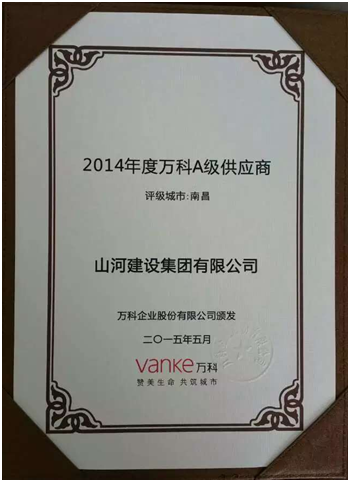 山河集团获评万科 “2014年度A级供应商”