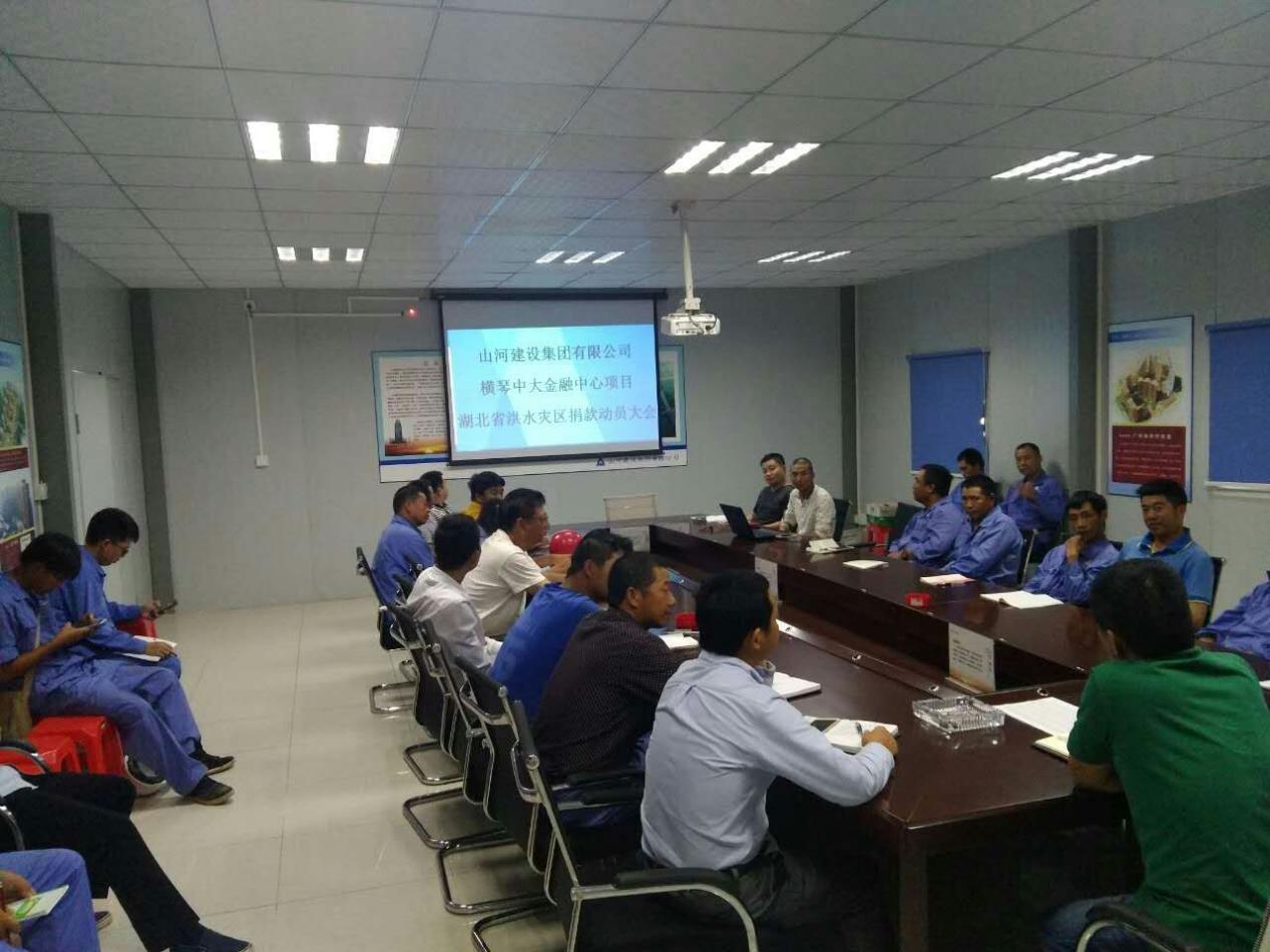 根据集团公司工会委员会下发的《倡议书》,中大金融大厦项目部领导高度重视,立即行动,紧急召开捐款动员大会。7月22日下午2点,项目经理简志良主持了动员会,项目部全体员工和部分班组成员在会议室观看了湖北受灾视频。在了解了灾情后,大家自发捐款,开展为灾区献爱心活动。在捐款现场,员工们纷纷表示,再困难也要献出自己的爱心,帮助湖北灾民重建家园、共度难关。短短半天时间,各工友纷纷慷慨解囊,捐款近4000元。