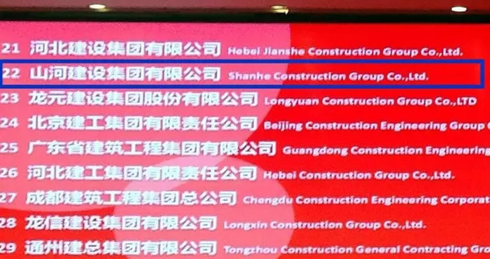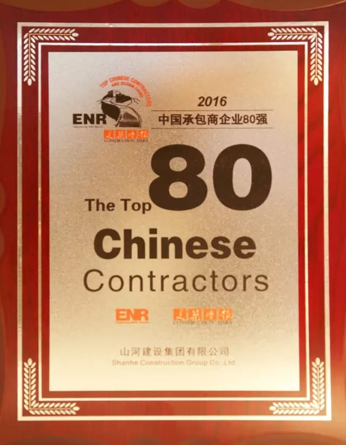 11月25日,由美国《工程新闻记录》(ENR)和中国《建筑时报》两家权威媒体共同主办的2016年度ENR/建筑时报"中国承包商80强和工程设计企业60强"颁奖典礼在福建省福州市隆重举行,山河集团再次荣获中国承包商80强荣誉称号,排名第22位。