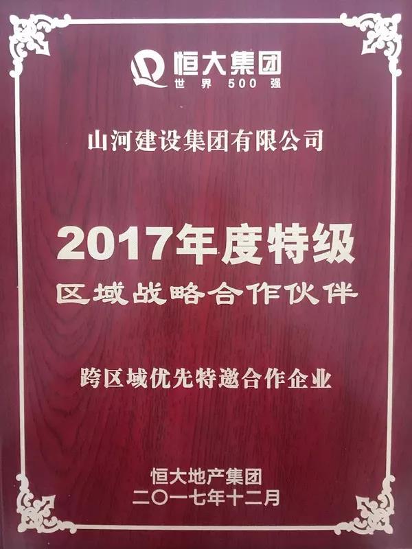 深度合作 携手共赢 | 山河集团成为恒大集团“2017年度特级区域战略合作伙伴”