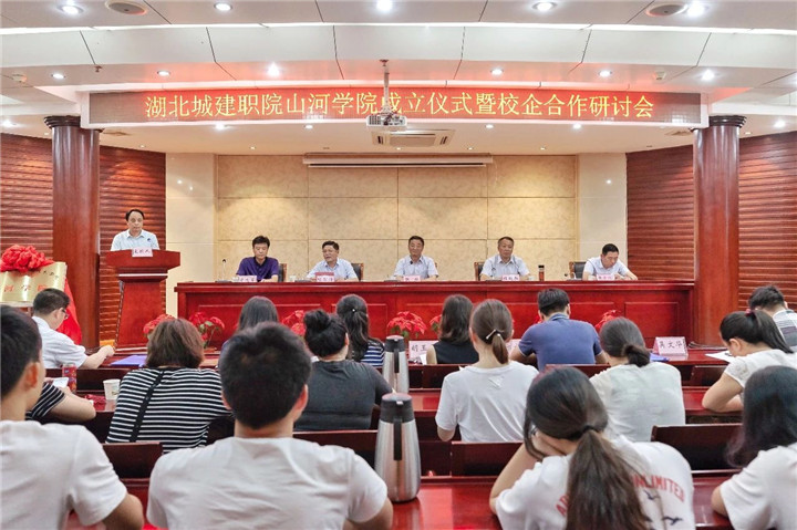 6月8日下午,位于风景秀丽的武汉东湖高新技术开发区藏龙大道,在湖北城市建设职业技术学院培训中心大楼里,山河集团党委书记、董事长程理财与湖北城市建设职业技术学院党委书记程超胜共同为“山河学院”揭牌。这标志着山河集团打造人才梯队建设、实施人才兴企战略,在湖北城建职院设立“山河学院”的校企合作正式启动。