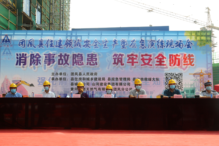 7月1日,团风县住建领域安全生产暨应急演练现场会在山河建设集团项目管理公司承建的团风县花园铺棚改项目施工现场举行,团风县人民政府副县长熊孟元等领导出席,活动由县住建局局长龙红兵主持。