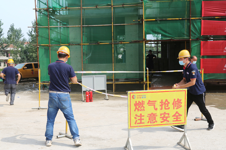 “喂,天然气公司吗?我公司在241省道旁的工地上,挖破了天然气管道,赶紧派人过来吧!”接到报警电话,天然气公司应急抢险中心立即出警前往处置,管道天然气泄露事故演练随之开始。