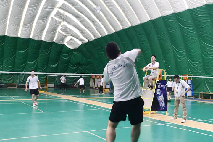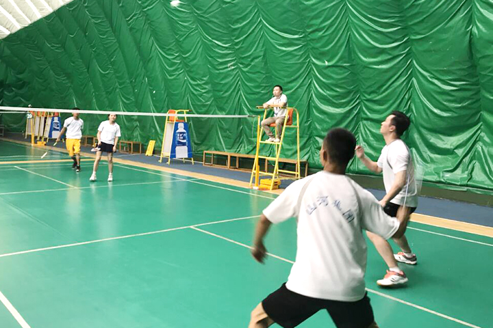 下午14时,全体参赛人员和后勤人员统一身着公司文化衫在羽毛球馆集合。主裁判员鲁自富宣布比赛规则后,参赛人员进行现场抽签决定场次及对手。随后,比赛如火如荼地展开,选手们一招一式都充分展现了不凡的球技和奋力拼搏的精神。