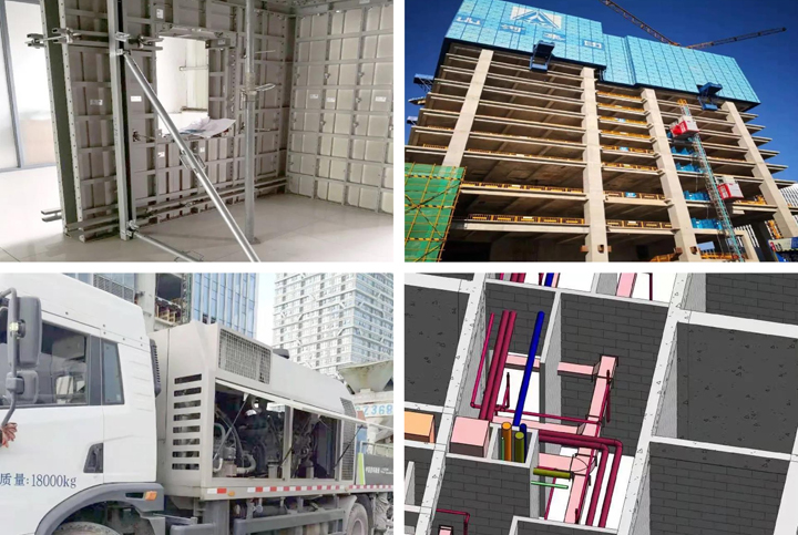 施工过程中,项目采用公司自主设计、生产的铝合金模板,具有强度高、安全性好、优质环保的特点,支撑采用早拆原理,只用一套模板、三套支撑,实现了4天一层楼的浇筑速度;采用集成附着式升降脚手架技术,米字型造型简洁大方,有效降低施工噪音污染、粉尘污染,起到保护环境的作用。