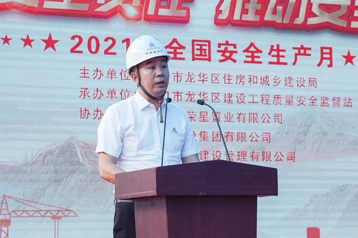 活动伊始,海南公司副总经理李发生作为企业代表发言。他对山河集团、海南公司及昌荣星城项目的情况进行了介绍,分享了集团安全管理工作的做法和经验,并承诺公司将牢固树立安全发展理念,坚决筑牢安全生产防线,确保项目建设稳步推进。