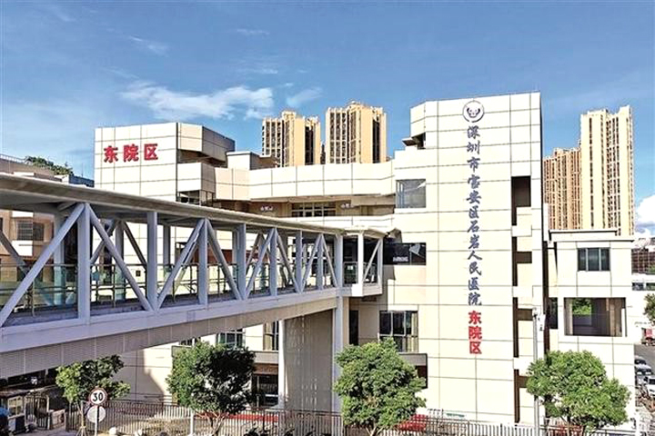 石岩人民医院位于石岩街道,是辖区内唯一的二级甲等公立综合医院。二期工程主要对原官田市场及住院楼第20、21层进行改造,分别设为医院东院区、心血管内科病区和全科医学科病区,新增床位250余张,并新建跨越吉祥路和盛田路的人行通廊,连接老院区和东院区。