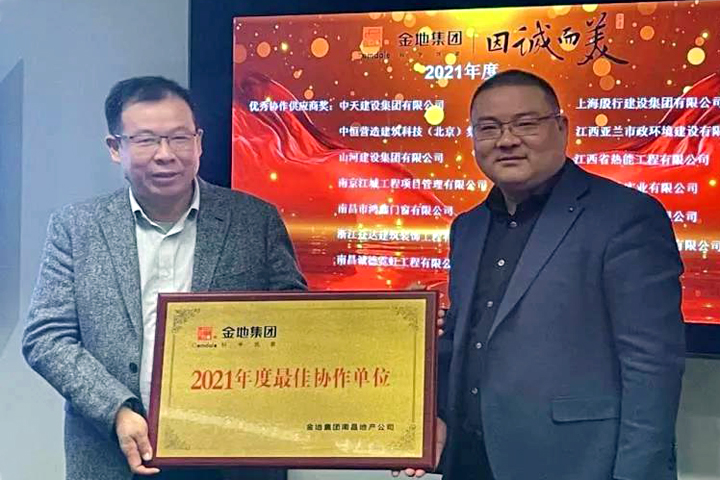 匠心筑品质,精品树标杆。1月6日,金地集团南昌地产公司召开2021年度总结大会,山河建设集团江西公司总经理熊善杰应邀出席。会上,江西公司被授予“2021年度最佳协作单位”称号。